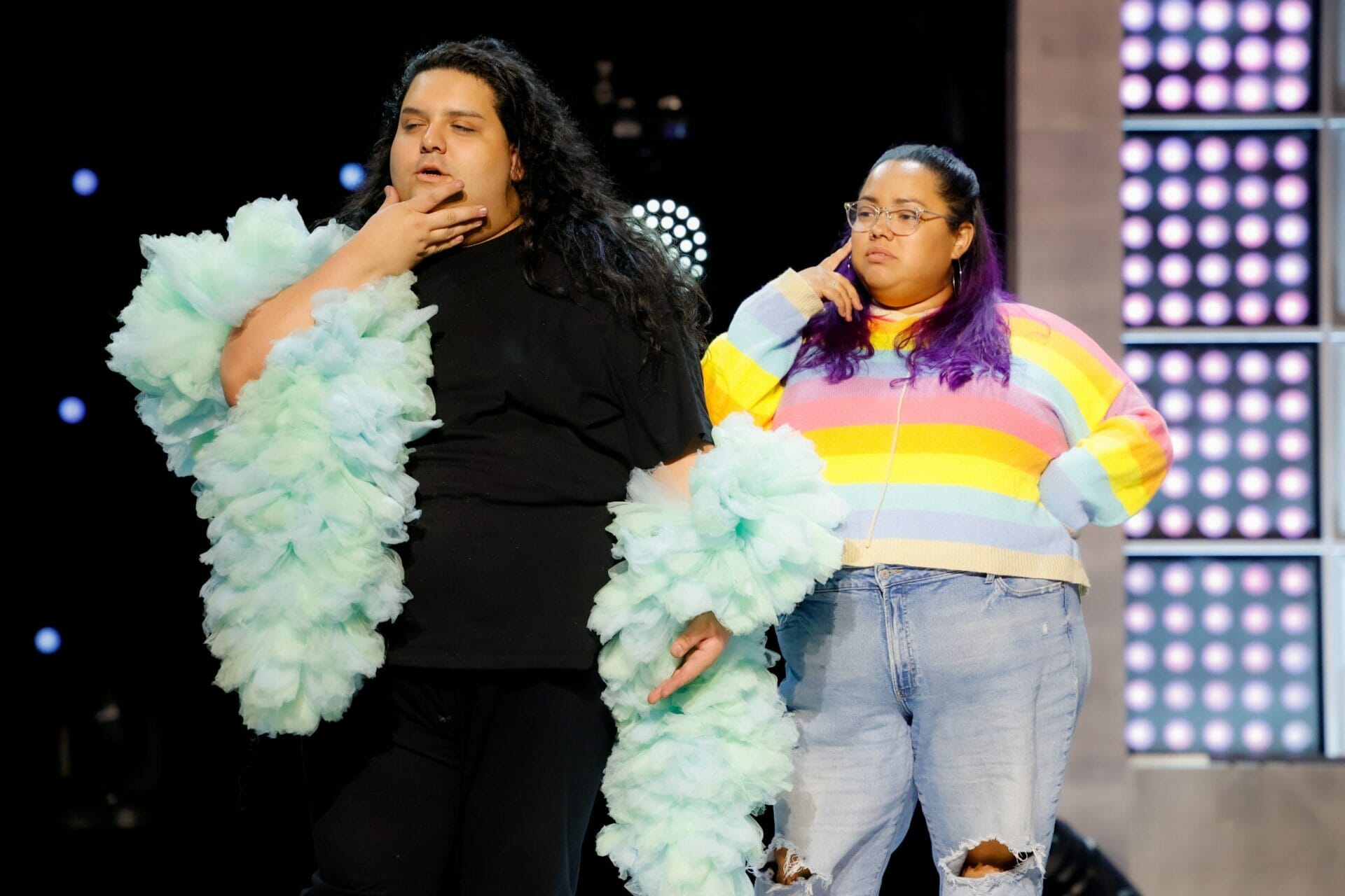 “This family resemblance is a no-brainer,” Ross says to Anetra and Alektra, who we already know are in the top based on these lewks alone. Ross especially likes the “arm foreskin” on these yin yang bodysuits. Hayley and Michelle continue the praise and gush about their performances and their connection.